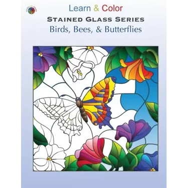 You can quickly unwind while coloring these stained glass birds, bees, and butterflies!