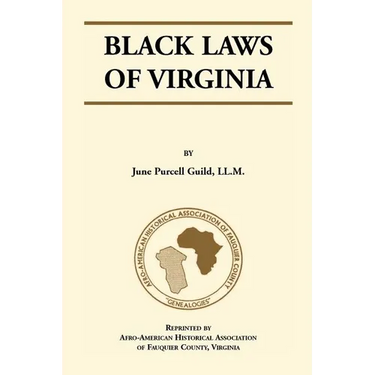 A clasic treatment of the laws that affected blacks in Virginia. It illustrates the importance of knowledge of the law in doing historical or genealogical research. "Black Laws of Virginia" was originally published in 1936 this book deals exclusively with the status of the Virginia Negro, bond and free, as tracted through the laws, resolutions and ordinances of the Virginia Assembly beginning with the earliest records and coming down to the present 1936], with the addition of a few pertinent sections from Virginia constitutions. The content of _Black Laws_ is organized chronologically within generally thematic chapters. The chapter headings are as follows: 1. The Struggle for Racial Integrity, 1630-1932 2. Servants and Slaves in the Sixteen Hundreds, 1623-1691 3. Slaves and Servants in the Seventeen Hundreds, 1701-1798 4. Slaves in the Eighteen Hundreds, 1801-1866 5. Free Persons of Color and Slaves, 1670-1882 6. Taxes, Civil Rights and Duties of Negroes and Others, 1623-1930 7. Criminal Law and the Negro, 1692-1928 8. The Development of Free Compulsory Education for Negroes and Whites, 1631-1936 9. War and the Negro, 1723-1928 10. Abolition and Emancipation, 1776-1870