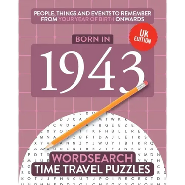 This is a large-format word search book with easy-to-read type. Some of these Time Travel Puzzles are easy; others have been made fiendishly difficult with clues to solve, missing words and false beginnings. But each one is bound to bring memories flooding back for anyone born in 1943!