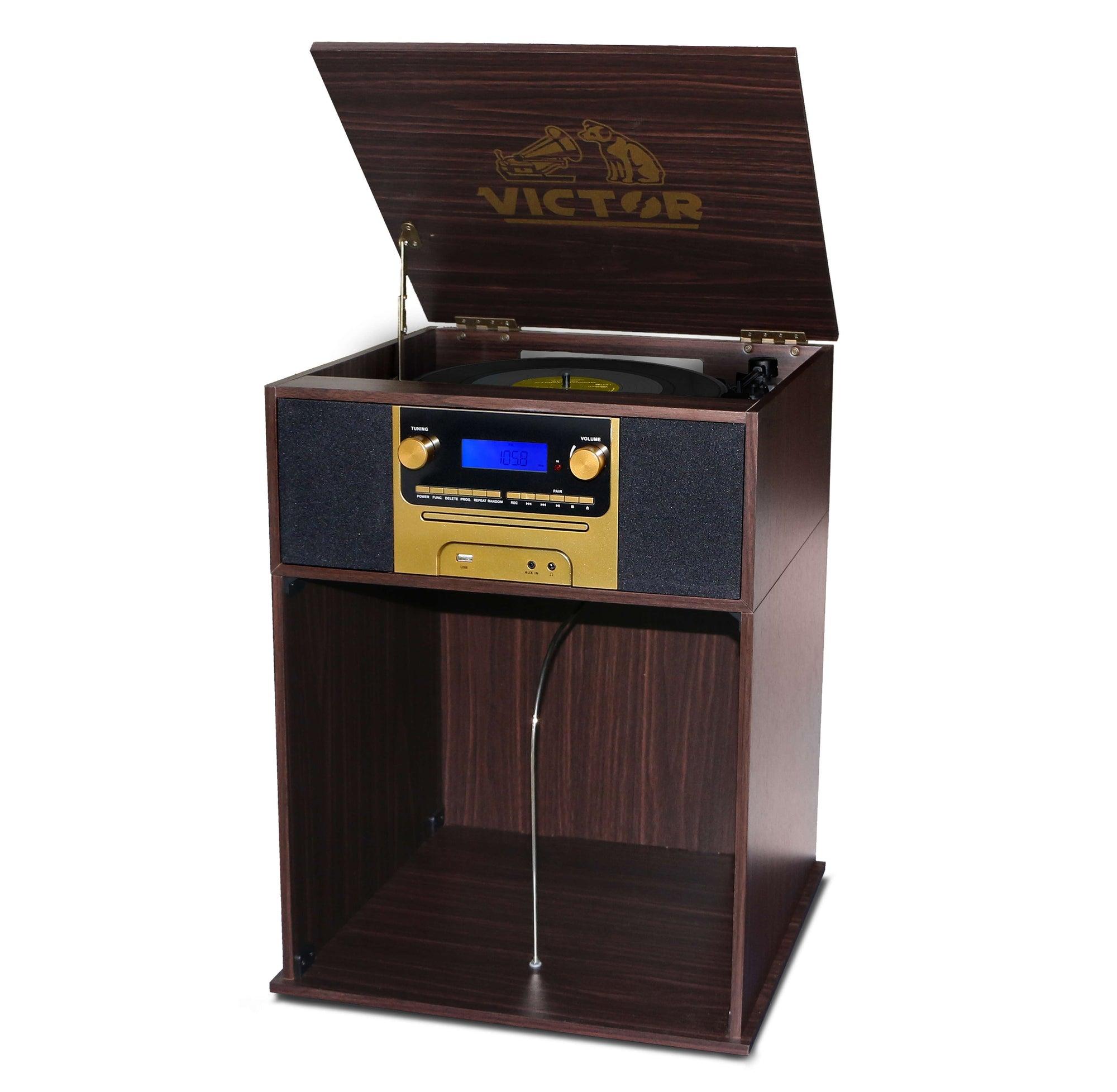 Victor Boyleston 7-in-1 3-Speed Turntable Music Center with Album Storage