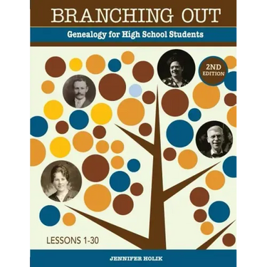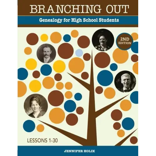Parents and teachers looking for a how-to genealogy book for high school students need to look no further. Branching Out provides parents and teachers with the tools they need to teach genealogical research skills to younger children. Through thirty fun and educational lessons, children will learn the foundations of genealogy and how to begin research on a level that they can understand and enjoy. Each lesson contains a clearly defined goal, all necessary vocabulary, additional reading assignments, and lesson and homework assignments to extend understanding of the concept.