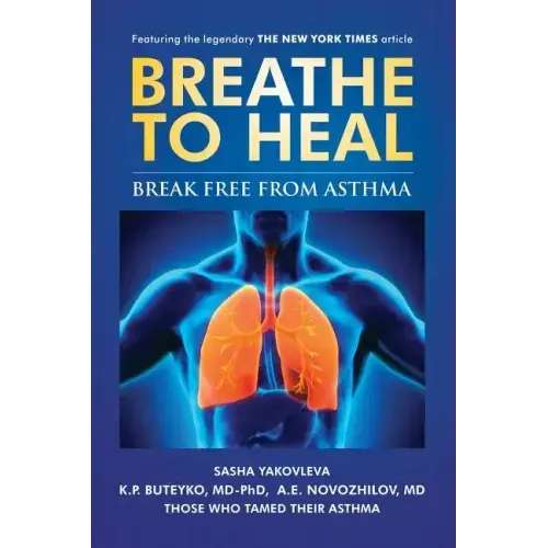 Understand Asthma & Breathing Difficulties. Stop Fighting Against Them Say "Goodbye" to breathing problems This book will help asthma sufferers to establish natural and wholesome breathing patterns. It will provide you with the information you need to tame your or your child's breathing difficulties naturally by improving the function of the respiratory system. It contains comprehensive instructions on the Breathing Normalization method based on the discovery by Dr. Buteyko in 1952 in Russia. Since then, this commonly called Buteyko technique has undergone many trials, and its benefits became known in the USA and all over the world. It has helped countless people to reduce or eliminate their breathing problems and become healthier and more energetic. Learn Buteyko Breathing Normalization from its original source. This book is written by K. P. Buteyko, MD-PhD, the author of the Buteyko Method, A.E. Novozhilov, MD, Medical Director of Clinica Buteyko in Moscow and Sasha Yakovleva, co-founder of BreathingCenter.com It also contains many stories of people who tried to improve their breathing in order to tame their asthma. This is the most unique, original and comprehensive book about breathing and Dr. Buteyko's work regarding its improvement.