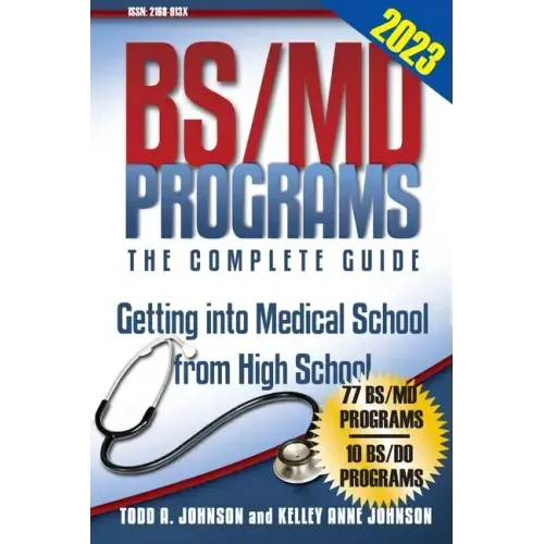 The most complete guide to BS/MD programs available. Updated for 2023. Written by a college counselor who has helped hundreds of students like you become the strongest candidate for BS/MD programs. Includes: - How to find the best program for your needs - The types of essay questions asked by BS/MD programs - Questions asked during medical school interviews - How to be the strongest possible candidate. This is the most current and complete guide to BS/MD programs available anywhere. For every program it includes: - Contact information - Application deadlines - Program details - Application requirements - Acceptance rates - Whether it admits international students. If you want to get into a BS/MD program, read this book.