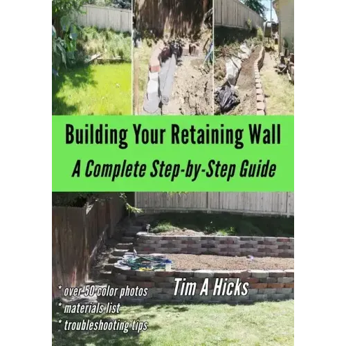 Building your own retaining wall may seem like a daunting task, but this book breaks the entire process down into manageable pieces and guides you step-by-step throughout the entire process. I cover everything from the initial planning, to getting supplies, digging the trenches, and laying the stones. I have included a full materials list, explanations, troubleshooting tips, and over 50 full-color photos. If you are planning to build your own retaining wall, I hope that as you read this book and view the photos, it will help you as you begin the journey of Building Your Retaining Wall.