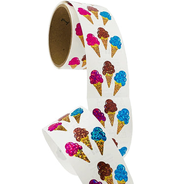 Bulk Roll Prismatic Stickers, Ice Cream Cones (100 Repeats).