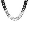 C160BW B.Tiff 16mm 2 Tone Black & Stainless Steel Flat Cuban Link Necklace by B.Tiff New York