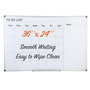 VEVOR Calendar Whiteboard - a chic and functional organization tool for workspaces, homes, and schools. With a smooth writing surface and easy wipe-off feature, it's perfect for tracking deadlines, projects, appointments, creating to-do lists. Get yours now and start taking control of your schedule!