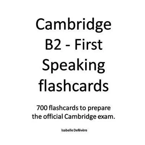 700 flashcards/questions to prepare the official Cambridge exam.The flashcards are based on all the topics of the B2 Speaking exam.These flashcards are perfect to teach if you are a teacher.They are also perfect to learn/practise if you are a student.Large format book.The back of each printed page is blank to allow to cut each flashcard.3 extra pages to create your own questions.