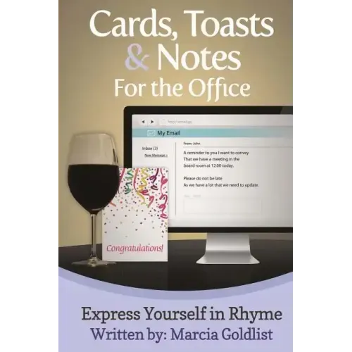 Cards, Toasts & Notes For the Office: Express Yourself in Rhyme provides 100 rhymes to help make the office more fun and relaxing. Sometimes an office can get a bit intense, but with this book you will have lots of poems to put into cards, send as notes, or to give as toasts to help make the office a more pleasant place to work. This is a must buy for anyone who spends time in an office with other people. This book contains the following main categories: birthday wishes, coming back to work after an absence, corporate sponsor, customer response, employee of the year, get well, giving a pin, improvement, kitchen area, leaving work, lost articles, meeting, new year wishes, phone memo, photocopy machine, private phone calls, receiving a bonus, speaking one's mind, travel, wedding card, welcoming back after maternity leave, welcoming someone to work and wishing someone well in their new job. With all these main categories you are sure to find rhymes which you can do use to lighten the mood in your office