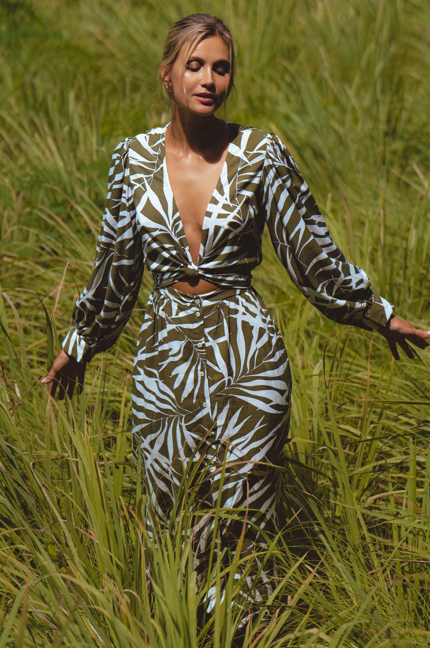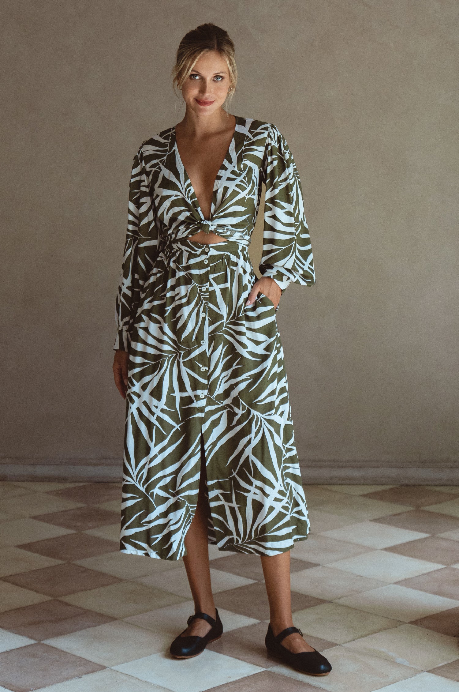 Cut from floaty rayon, Celeste long sleeve midi dress is that perfect convertible dress that gives you endless styling options. Designed with elasticated waist, long sleeves and button down hem this dress can be worn crossover on the front in a wrap style for more coverage or tied into the knot to show a little skin.