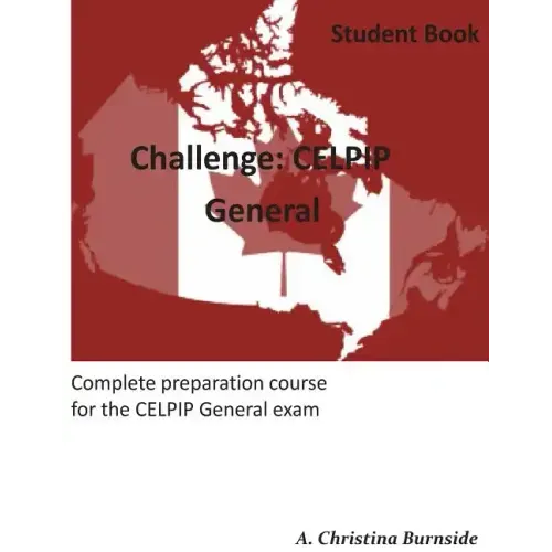 ** On April 1st, a revised version of the exam was launched. While there are some differences, this is still a good resource to help you prepare. I am working diligently on a revised version of this preparation book to more closely reflect the questions in the new exam. In addition, an audio cd will be available as well.** Challenge: CELPIP General is a preparation coursebook, created to help you achieve a higher level of success on your exam. With many activities practicing all areas of the exam, (writing, reading, listening and speaking) not only will you gain insight into the exam but your overall level of English will improve. Topics covered include money, transportation, the environment, working life, food, family and technology. Each unit focuses on a different Canadian city, giving you information and a bit of history while helping you prepare for the exam. With easy to understand brief grammar descriptions, loads of extra activities and helpful tips in the Appendix, this book is all you need