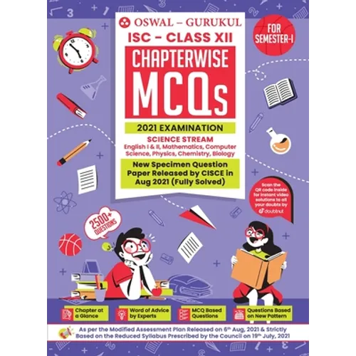 Perform well in Semester 1 Exam for ISC 12th Class with newly introduced Oswal - Gurukul Chapterwise MCQs Science Stream for 2021 Exam. This practice book includes Science Stream subject papers such as English I & II, Physics, Chemistry, Maths, Biology, and Computer Science. How can you benefit from Oswal - Gurukul ISC Chapterwise MCQs for 12th Class Science? We have designed the book based on the Modified Assessment Plan issued by the Board on August 6, 2021. Students can attempt the questions even in changing scenarios and exam patterns. Our Comprehensive Handbook Includes questions segregated chapter wise which enable Class 12 ISC students' to concentrate properly on one chapter at a time. 1. Strictly followed the Specimen Question Pattern released by CISCE in August 2021 2. Content is purely based on the Latest Reduced Syllabus issued by the Board on July 19, 2021 3. 2500+ Chapter Wise Multiple Choice Questions for intensive practice 4. Includes all types of MCQs such as Diagram based Questions, Case based questions, Fill in the blanks, Numerical questions, Comprehension Questions 5. Word of Advice by Experts to avoid common mistakes 6. Last minute revision with Chapter at a Glance 7. Fully Solved New Specimen Question Papers