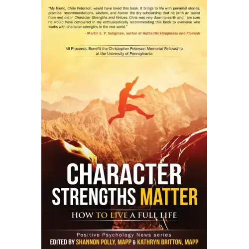 What are the elements of good character? The Values in Action (VIA) project identified 24 qualities such as creative, authentic, loving, forgiving, kind, persistent, prudent, and brave, calling them character strengths. Character strengths are elements of good character valued across time and around the world. If you are curious about your own strengths, join the 3 million people that have taken the free online survey at www.viacharacter.org. Character Strengths Matter: How to Live a Full Life brings the 24 character strengths to life with stories involving children, teenagers, adults, and elders and occurring in family life and business settings, in the present and in the distant past, in locations from China to the United States to the Middle East. Research shows that using character strengths in new ways for a week makes people happier up to six months later. This book includes many ideas for using your character strengths in new ways. Based on the unusual premise that a key way to build strength is to act 'as if' you have that strength already, this book includes short passages to read aloud to try on particular character strengths. This concept is well known to actors and elite athletes, but less well known to the rest of the world. Look inside the book to see whose words are used to embody hope, gratitude, leadership, creativity, kindness, love and all the rest. More than 30 authors contributed stories to this book, including George Vaillant, the 35-year director of Harvard's Study of Adult Development. Many leaders in the positive psychology field endorse the book, including the 'father of positive psychology' Dr. Martin E. P. Seligman. He writes: "My friend, Chris Peterson, would have loved this book. It brings to life with personal stories, practical recommendations, wisdom, and humor the dry scholarship that he (with an assist from me) did in Character Strengths and Virtues. Chris was very down-to-earth and I am sure he would have concurred in my enthusiastically recommending this book to everyone who works with character strengths in the real world." Martin E. P. Seligman, author of Authentic Happiness and Flourish Proceeds from the sale of this book will be donated to a scholarship at the University of Pennsylvania in honor of the lead researcher of character strengths, the late Christopher Peterson. This scholarship supports the education of future practitioners of positive psychology. This is the third book in the Positive Psychology News series, joining Resilience: How to Navigate Life's Curves and Gratitude: How to Appreciate Life's Gifts. Bottom line, this book is bound to make you learn something new, be inspired about humanity and have a chance to play with character strengths. This book will make you happier.