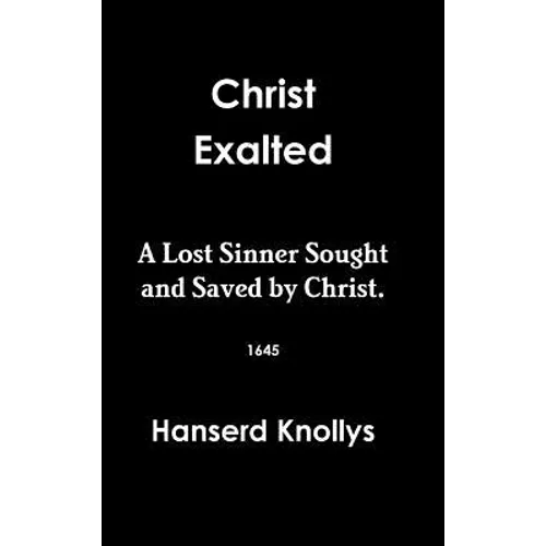 Christ Exalted. A LOST SINNER Sought and Saved by Christ. 1645. God's people are a holy people. Being the sum of diverse sermons preached in SUFFOLK; by Hanserd Knollys; who for this doctrine had the meeting house doors shut against him, and was stoned out of the pulpit; as he was preaching by a rude multitude, who were gathered together against him. COMPLETE & UNABRIDGED. ***************************************************** ADDITIONAL TREATISE: MYSTICAL BABYLON UNVEILED: Wherein is proved. I. That Rome-papal is Mystical Babylon. II. That the Pope of Rome is the Beast. III. That the Church of Rome is the Great Whore. IV. That the Roman priests are the False Prophet. ALSO; A call to the people of God to come out of Babylon. 1679. COMPLETE & UNABRIDGED.