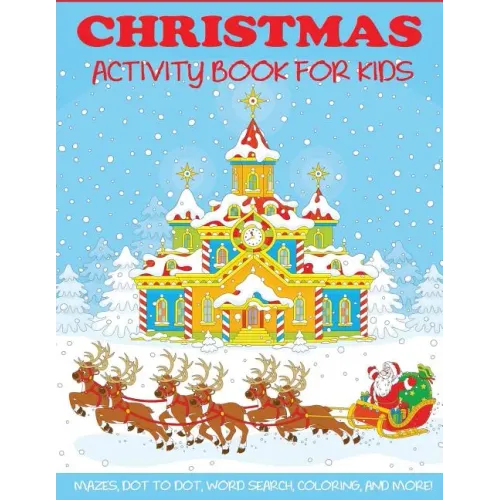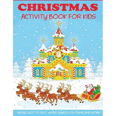 Christmas coloring book and activity book for kids. Celebrate the holiday with this fun-filled activity book including mazes, connect the dot puzzles, color by number, word search, coloring pages, and more.