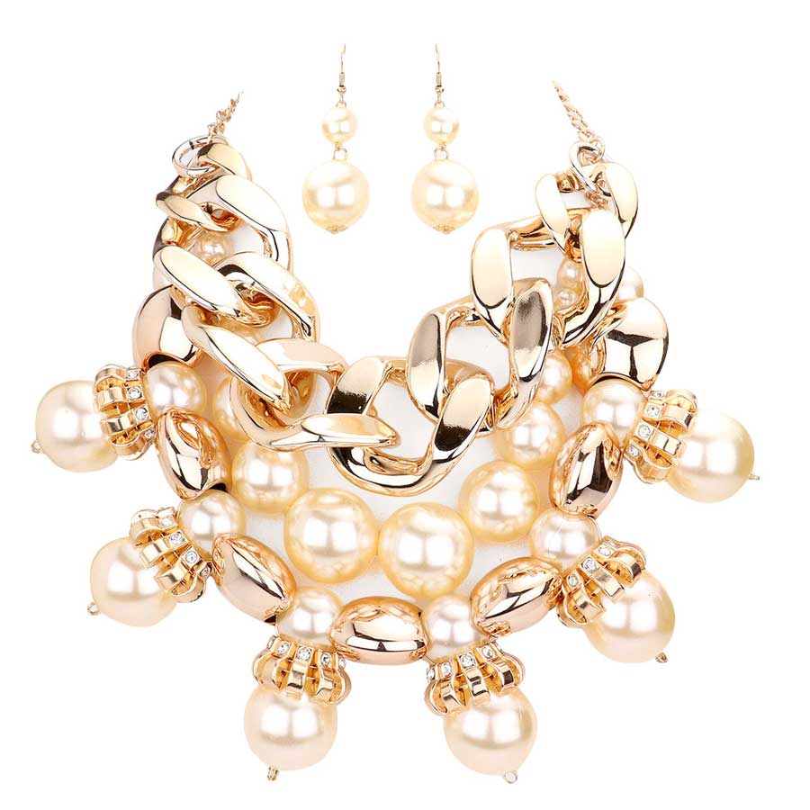 • Chunky Chain Pearl Bib Necklace