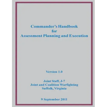 As the Joint Staff J-7 continues to interact with the combatant commands and Services, werecognize that there is very little "how to" doctrinal guidance on planning and executingassessments. Consequently, we have developed this pre-doctrinal handbook to help joint forcecommanders and their staffs understand the scope and importance of assessment and provideinformation and guidance on its process; best practices; planning, and execution. This handbookwas written to provide needed detail to military planners and is based on extensive lessonslearned and best practices gained throughout the joint environment.Assessment is a key component of joint operation planning as described in keystone documents in the joint publication series, and outlines the basic process for conducting assessment. However, these joint publications contain considerable top-level discussion of assessment and lack the level of detail needed by staffs tasked to conduct assessment. This handbook describes detailed procedures that can be used to measure progress in achieving desired results.This handbook is descriptive, not prescriptive. It is offered as a practical method for assessing the planning and execution of joint operations. Joint force commander's around the world routinely conduct assessment as a part of their day-to-day battle rhythms, and numerous headquarters have used the procedures described in this handbook during exercises and operations.We hope this handbook stimulates the joint community's thinking about how to addressassessments. We encourage you to use the information in this handbook and provide feedback to help us capture value-added ideas for incorporation in emerging joint doctrine, training, and professional military education.