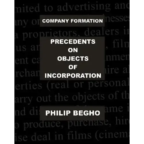 This is a book which anyone engaged in forming companies will find useful. It sets out the main objects of 225 companies in a manner that lends itself to ready use in preparing the requisite documents for incorporating a company.