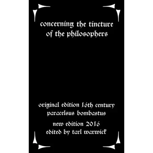 The ways of alchemy within alchemical manuscripts themselves can be confusing and arcane. Here, in a work attributed to Paracelsus, (although it was manufactured later and merely retains his tradition of work) it is explained in some depth, in a more compact manner. The creation of the philosophers' tincture, as a form of medicine, continues to mostly elude the modern day occultist. Here then are references to its manufacture, the process involved, and a lengthy and acerbic refutation of the critics of the mystic world.
