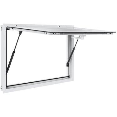 3.Easy to Open: With an 85° wide opening angle for an expansive view, equipped with two hydraulic rods, serving window opens effortlessly. This concession window enables you to easily serve food to customers. The included sunshade protects against rain, sunlight, and theft.