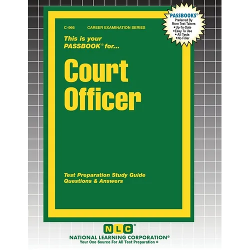 The Court Officer Passbook(R) prepares you for your test by allowing you to take practice exams in the subjects you need to study. It provides hundreds of questions and answers in the areas that will likely be covered on your upcoming exam, including but not limited to: understanding, interpreting and preparing written material; remembering facts and information; court record keeping; applying facts and information; and other related areas.