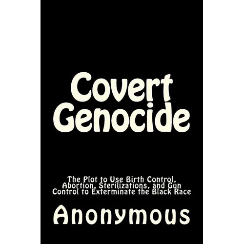 Review from Anonymous ProfessorWould you like to read a bombshell of a book? COVERT GENOCIDE: THE PLOT TO USE BIRTH CONTROL, ABORTION, STERILIZATIONS, AND GUN CONTROL TO EXTERMINATE THE BLACK RACE is the book for you. This explosive book, well researched and documented, yet written in an easy to read popular style, has the potential to make huge waves and disturb a lot of people both black and white or somewhere in between. That is perhaps the reason the author chooses not to reveal his identity and receive the applause that is rightfully due him.Instead he publishes the book under the authorship of ANONYMOUS.