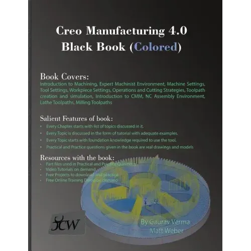 The Creo Manufacturing 4.0 Black Book is the first edition of our series on Creo Parametric Manufacturing Apps. The book is crafted to help professionals as well as students in creating basic CAM programs using Creo Parametric. The book follows a step by step methodology. In this book, we have tried to give real-world examples with real challenges in manufacturing. We have tried to reduce the gap between university use of Creo Parametric and industrial use of Creo Parametric. The book starts with basics of machining and ends at advanced operations in milling. Some of the salient features of this book are: