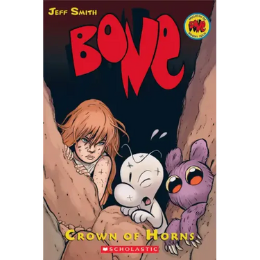 It's full-fledged war as Briar, the Rat Creatures, and the Pawan army storm the city of Atheia where the Bone cousins, Thorn, and Gran'ma Ben are up in arms to defend the royal city. When Thorn hears a voice urging her to seek the Crown of Horns, she and Fone Bone embark on another dangerous journey and race to find the one thing that may save them all.