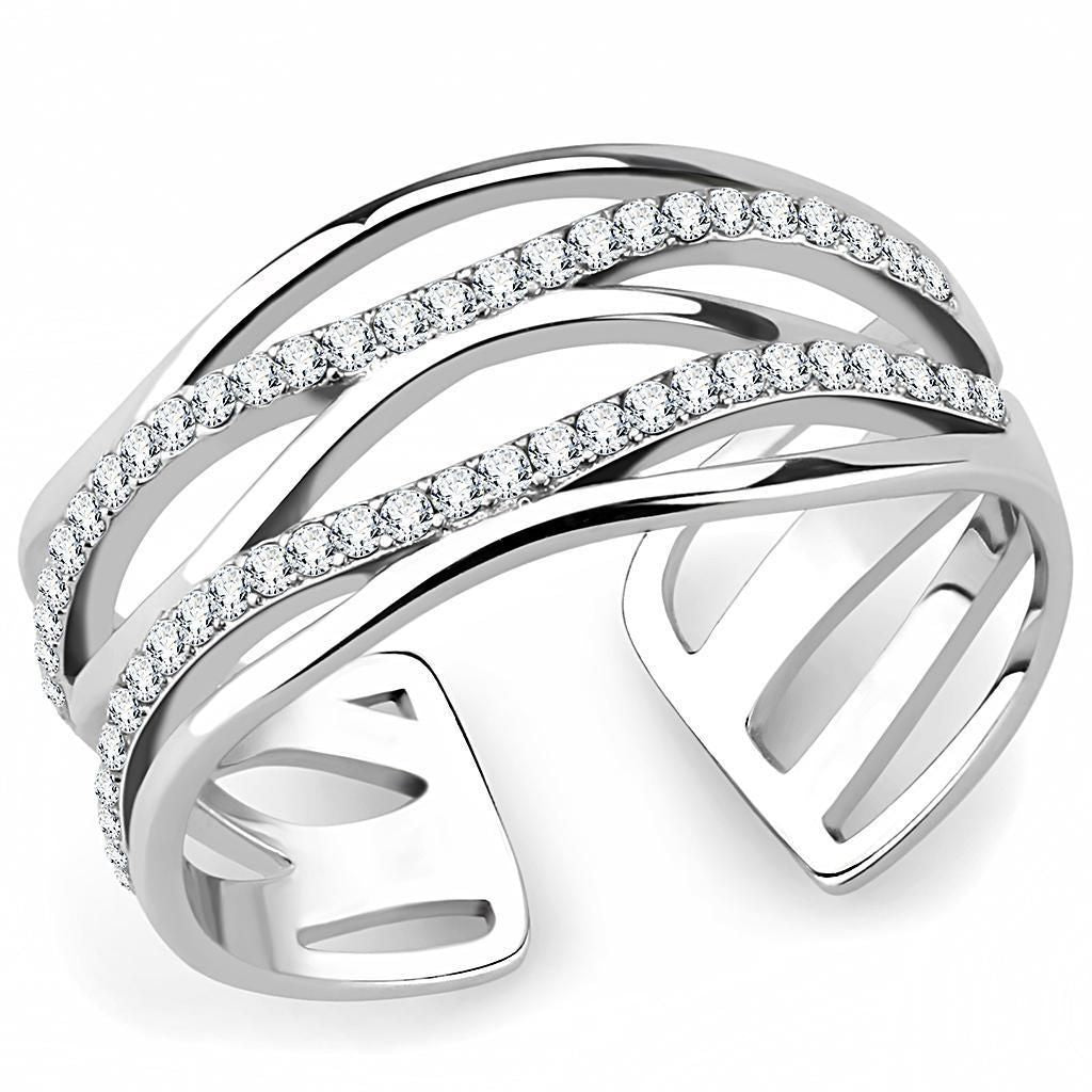 DA047 - High polished (no plating) Stainless Steel Ring with AAA Grade CZ in Clear