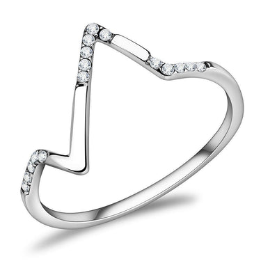 DA107 - High polished (no plating) Stainless Steel Ring with AAA Grade CZ in Clear