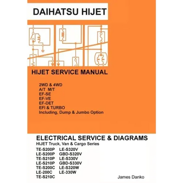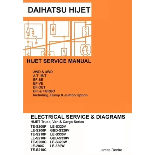 Factory Service manual for the following Daihatsu Hijet trucks & Vans: TE-S200P LE-S200P TE-S210P LE-S210P TE-S200C LE-S200C TE-S210C LE-S210C LE-S320V GBD-S320V LE-S330V GBD-S330V LE-S320W LE-S330W including Dump & Jumbo Options. Engines covered in this manual include EF-SE, EF-VE, and EF-DET Turbocharged units. Both 2WD & 4WD, including A/T & M/T vehicles. Every circuit and electrical component is broken-down for easy and fast troubleshooting. Complete handy Pin & Connector guides along with all wiring color codes make troubleshooting a breeze. Easy to read and follow Diagrams let you see what you are looking for right down to the Connector, Pin, and wire location. With this manual you will be able to troubleshoot the entire vehicle in no time. 90%% of problems with the Hijet are electronically related; sensors, relays, broken or shorted wires. Have your truck or van back in factory running condition in no time. Over 280 Pages printed in large scale for easy viewing. Written by a Mechanic for Mechanics