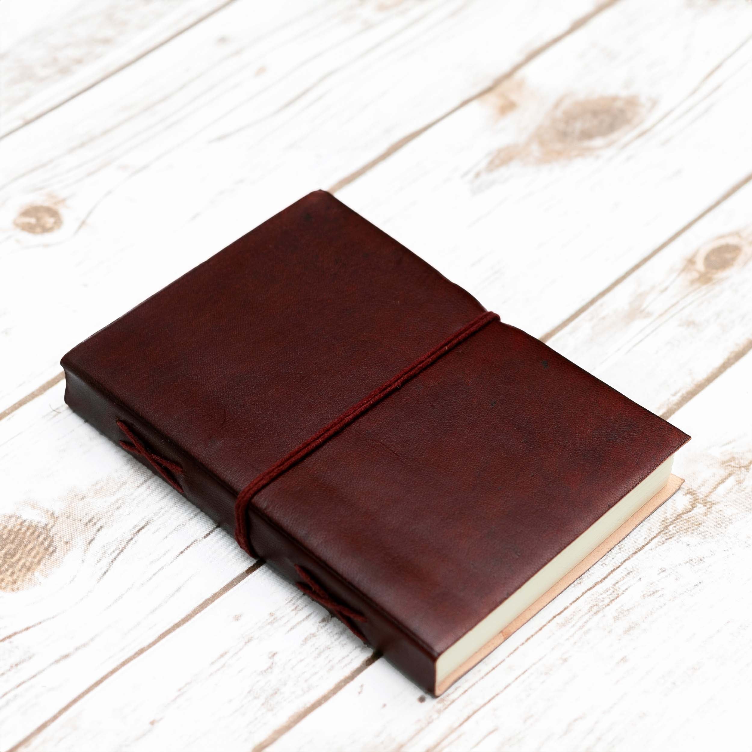 7x5 size leather journal in dark brown color.