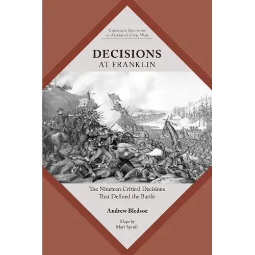 Decisions at Franklin explores the critical decisions made by Confederate and Union commanders during the battle and how these decisions shaped its outcome. Rather than offering a history of the battle, Andrew Bledsoe hones in on a sequence of critical decisions made by commanders on both sides of the contest to provide a blueprint of the Battle of Franklin at its tactical core. Identifying and exploring the critical decisions in this way allows students of the battle to progress from a knowledge of what happened to a deep understanding of why eventshappened. Complete with maps and a driving tour, Decisions at Franklin is an indispensable primer, and readers looking for a concise introduction to the battle can tour this sacred ground--or read about it at their leisure--with key insights into the campaign and a greater understanding of the Civil War itself. Decisions at Franklin is the fifteenth in a series of books that will explore the critical decisions of major campaigns and battles of the Civil War.