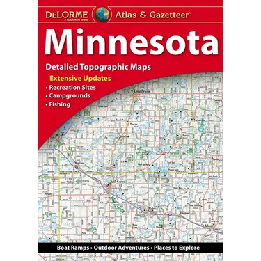 With an incredible wealth of detail, DeLorme's Atlas & Gazetteer is the perfect companion for exploring the Minnesota outdoors. Extensively indexed, full-color topographic maps provide information on everything from cities and towns to historic sites, scenic drives, trailheads, boat ramps and even prime fishing spots. The Atlas & Gazetteer is your most comprehensive navigational guide to Minnesota's backcountry. - Full-color topographic maps provide information on everything from cities and towns to historic sites, scenic drives, recreation areas, trailheads, boat ramps and prime fishing spots. - Extensively indexed. - Handy latitude/longitude overlay grid for each map allows you to navigate with GPS. - Inset maps provided for major cities as well as all state lands. - State forest lands, state wildlife management areas, and national waterfowl production areas are highlighted in color. Product Details Dimensions: 15.5" x 11".