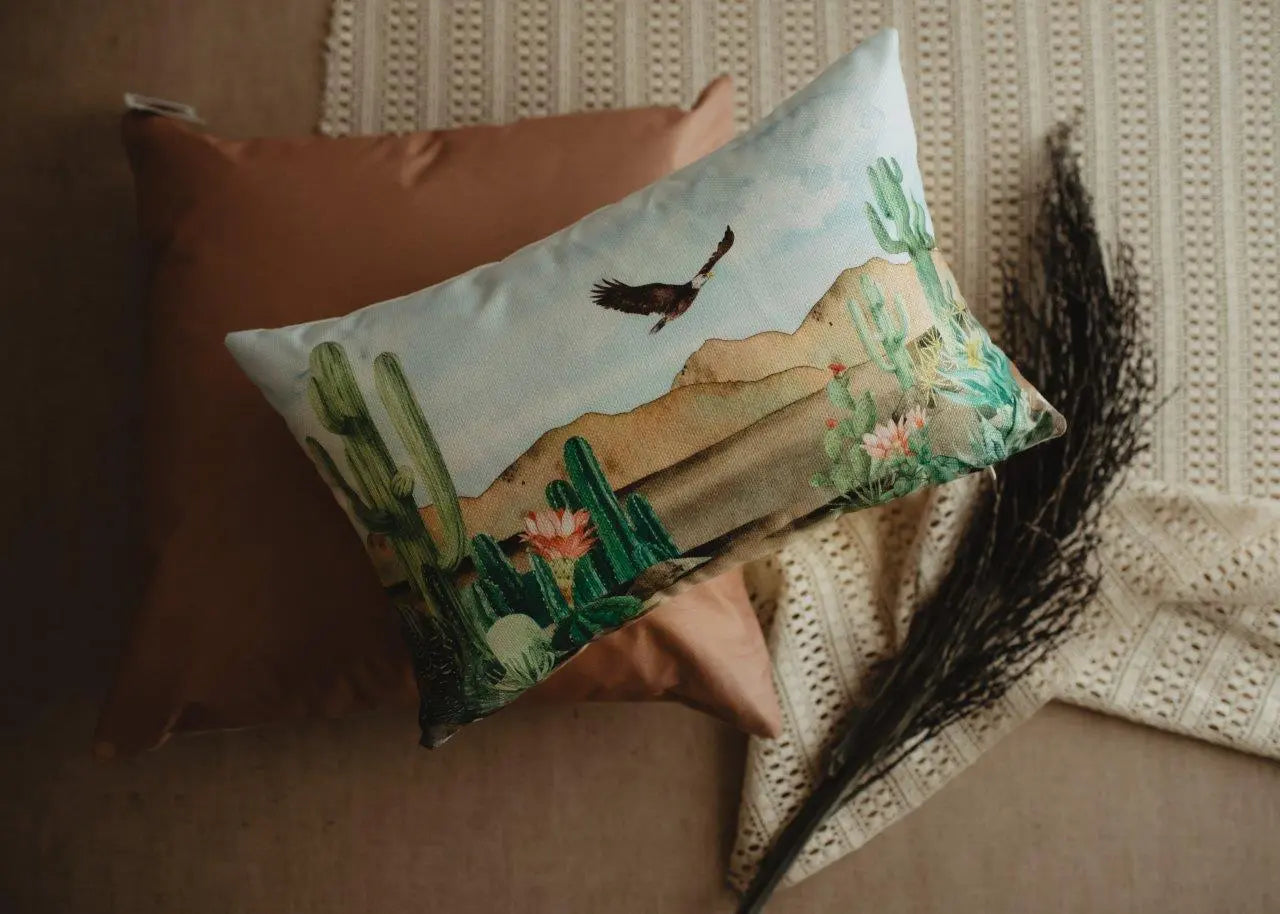 Desert Saguaro Cactus | Pillow Cover | 18x12 | Southwestern Desert | Arizona Gifts | Home Decor | Gift Idea | Arizona Art | Desert Painting by UniikPillows