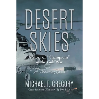 Desert Skies is a novel about Attack Helicopter Warfare in the Gulf War. The first edition was published in 2001. It includes insight into small unit tactics and training, the downsizing of the United States military, ramifications of technological advances and offers a look into potential causes of the Gulf War Syndrome. The current edition has been re-edited for the 25th Anniversary edition.