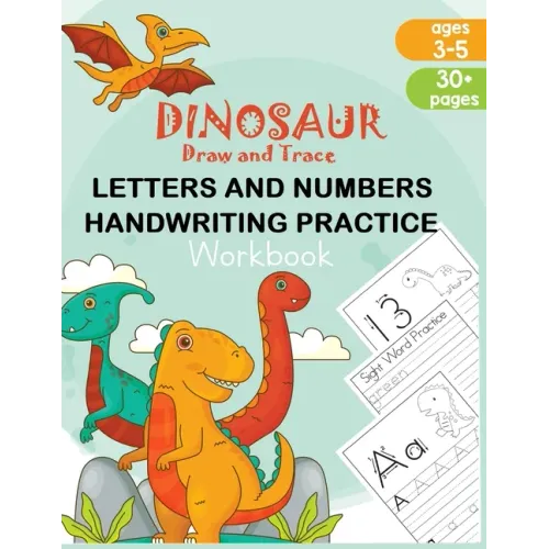 Dinosaur Draw and Trace Workbook: Numbers, Letters and Sight Word Practice Pages - Paperback