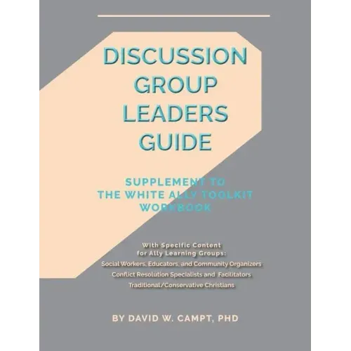 The Discussion Group Leaders Guide provides detailed instructions for a group leader to create an anti-racism ally learning community engaging The White Ally Toolkit Workbook, helping allies accelerate their learning to better influence people with racially problematic views. * Usable by people at wide range of facilitation skill - from novice to master* Teaches groups how to navigate through the 298 Workbook in three short courses* Provides details instruction about role-plays, homework, and group discussionsThe guide also has materials to help ant-racism allies build a stronger sense of solidarity for specific populations: * Educators, social workers, and community organizers* Conflict resolution specialists, civic engagement professionals, and dialogue facilitators* Christians who would label themselves traditional or conservative "Having the discussion guide is like having a master facilitator in the room ready to step in if things get sidetracked or I get confused." Sue from Portland, OR