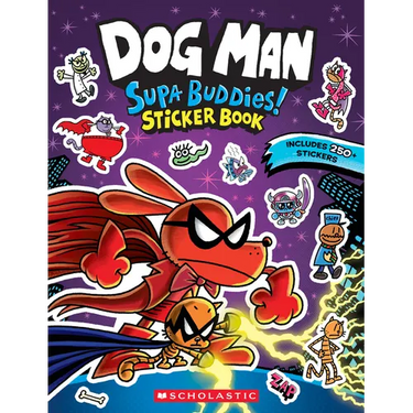 Dog Man is part dog, part man, and all hero! You can join Dog Man, Petey, Li'l Petey, Big Jim, and all their friends on their action-packed Supa Buddy adventures in the second volume of this interactive sticker book based on the bestselling book series.