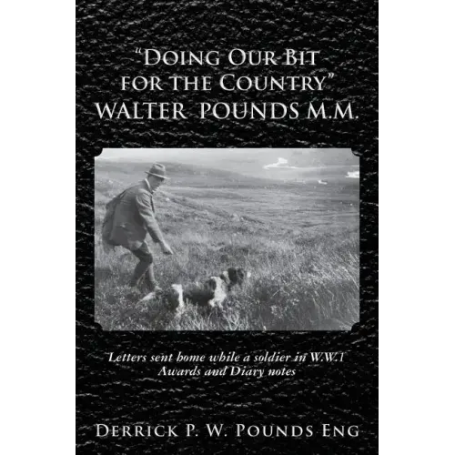 "Doing our Bit for the Country" contains transcripts of 30 letters sent home by Walter Pounds M.M during the First World War. Several letters were written on the battlefields in Flanders and France including the one copied below dated June 1916, others while in hospitals recovering twice from war wounds. "Dear Mother Just a line in hast to you letting you know I am quite safe after the Battle we have had here this last week. I think I told you we were on a short rest but it only lasted a few day as we had quick orders to come back to the firing line & I can tell you we have had a hot time of it and lost 600 yards of trenches but I think we have got most of them back again for the Artillery shelled them out of it. We had the order to get back one afternoon and the whole of the 17 miles we had to walk at a fast rate and the whole of the way it poured with rain. When we got to our position we were like drowned rats we did not land until 1:30 in the morning & all that night we had to be firing & all the next night. We have only had one night in bed this week & then we had had to sleep fully dressed they did not use gas this time but liquid fire. It has been a hot time. We are expecting another clash any day now but I think we shall hold them. We have had several air raids this last day we only had 10 German planes over this morning & all today we have had plenty of fighting in the Air as well as down below. It is a devil out here for mud lately but today sunny. I only wish it would keep like it for a week or so. This letter will be posted in England as one of my Pals is on leave in England I wish I was coming with him as I am fed up with the life out here. It is a regular tramps life & we have no fires to have a warm by but we keep on smiling as long as we are doing our bit for the country. It makes you feel rather sorry for this country to see the wreck of the place, the fields around our guns are just like a quarry for it is full of shell holes & they smashed some of dugouts in the other night. We have had a few of our lads killed & others died of wounds but I think it lucky for any of us to be alive. Our position is just outside the town of Ypres. I expect you often see the name in the papers we are about 50 yards from the main Calais road of which the Germans have so many times to get for. If we let them through here they would have a straight run to Calais but they have something to do to get through though we had a job hold them the other week. So just look out for an attack around Ypres and hill 60 because I will be in them. Must now close. Hoping this finds you all well as it leaves me in the best.Love Walter" This book also contains his army records and awards while serving 41/4 years with the British Royal Garrison Artillery in France and Belgium in the 1914-1918 war. He also received two Police medals for voluntary service, during more than 25 years, as a Special Police Constable before, during and for many years after the Second World War 1939-1945. Walter Pounds M.M. (b. 1895, d.1991) was born in the 'Bee Hive', Church Lane in Newton Solney, Derbyshire, England and started work at age 13 on the Ratcliff estate, first as a stable boy later becoming gamekeeper/ woodsman. Following discharge from army service, he continued his gamekeeper and woodsman duties on the Ratcliff estate at Newton Solney. Throughout his life, Walter Pounds M.M. recorded the highlights of daily events in large ledgers and small diaries. The book content titles include: The Ratcliff estate in Newton Solney Training dogs Pheasant and Partridge shoots Hunting rabbits using ferrets Fishing on the river Dove Special Constable Walter Pounds M.M. Walter Pounds M.M. and his Pound_ ancestors The passing of Walter Pounds M.M. at age ninety-six This book is available for on-line ordering through Amazon.com In the "search space" enter The ISBN number: 978-1490312194 Then click on "Doing our Bit for the Country" Walter Pounds M.M.