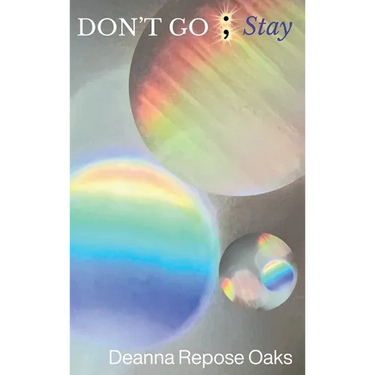 Written from the depths of darkness while listening to an inner voice, Deanna Repose Oaks isn't challenging you to "Don't Go; Stay". Instead, you witness her challenge herself, first with selfish tenacity, then with reluctant vulnerability. Everyday things such as calendars, revolving doors, movie matinees, and kitchen sinks transform into greater hope and deeper understanding of her ever-changing darkness with its ebb and flow.