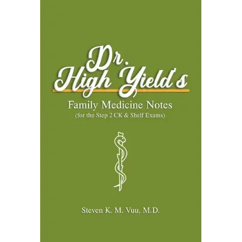 Enter the mind of a top scorer for the Step 2 CK and Shelf medical board exams. These personal notes are ultra condensed for maximum repetition and solidification of knowledge. These notes are written in a condensed numbered format for a rapid and efficient review for this high stakes exam. Dr. High Yield covers almost every must-know topic essential for success. This book provides a rapid review of high yield information to best prepare you for your upcoming examinations. This book will help you zone in on key details and equip you with knowledge to help answer a question you may encounter. This book is best used as a last minute review leading up to the exam when you no longer have enough time to read a textbook or do more practice questions.