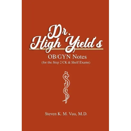 Enter the mind of a top scorer for the Step 2 CK and Shelf medical board exams. These personal notes are ultra condensed for maximum repetition and solidification of knowledge. These notes are written in a condensed numbered format for a rapid and efficient review for this high stakes exam. Dr. High Yield covers almost every must-know topic essential for success. This book provides a rapid review of high yield information to best prepare you for your upcoming examinations. This book will help you zone in on key details and equip you with knowledge to help answer a question you may encounter. This book is best used as a last minute review leading up to the exam when you no longer have enough time to read a textbook or do more practice questions.