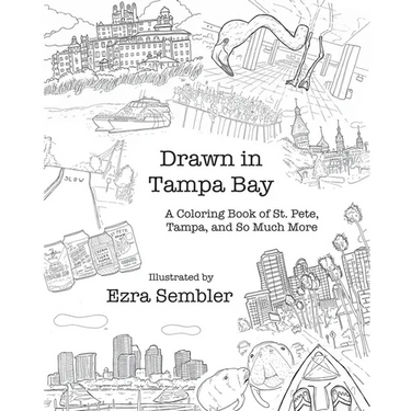 Drawn in Tampa Bay is the second coloring book from St. Pete artist and Illustrator Ezra Sembler. Contained in this book are over 50 line drawings of iconic areas all over the Tampa Bay region, with an emphasis on St. Pete. From the local beers at St. Pete breweries, to the minarets of the University of Tampa, you will be immersed in an exciting coloring journey of all things Tampa Bay!