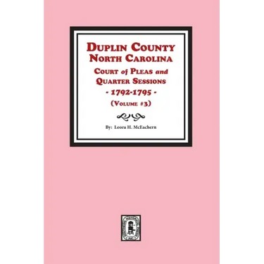 Duplin County was formed in 1750 from New Hanover County, NC. It is located in the Southeastern section of the state and is surrounded by the counties of: Jones, Lenoir, New Hanover, Onslow, Sampson, and Wayne. In these abstracts, one will find local office holders being appointed, the levying and expenditure of local taxes, selecting & summoning of juries, licenses being granted to operators of taverns, as well as deeds & bills of sale being acknowledge by the grantor. The Court also oversaw a wide range of matters involving estates, including probate of will, settlements of estates, and appraisement, as well as matters dealing with bastardy, and many other valuable bits of information.