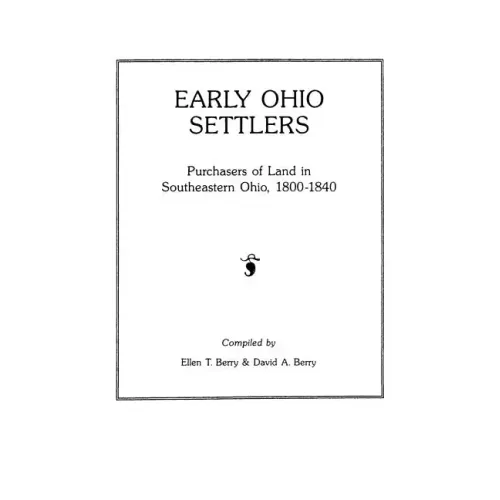In an easy-to-use tabular format, there is a complete list of the 7,500 persons who bought land in southeastern Ohio from 1800 to 1840. Data given includes the purchasers' name (in alphabetical order), date of purchase, place of residence at the time of the purchase, and the range, township, and section of the purchased land. The information in this tightly organized book is a distillation of the contents of tnirty volumes of unindexed land records.