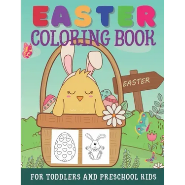 Easter Coloring Book For Toddlers and Preschool Kids with a collection of 30 big and simple drawings for kids ages 1-4, toddlers, and pre-school kids to color during the Easter holidays. Large and simple drawings for little toddlers and pre-schoolers. Makes a great arts and crafts activity with grandparents and other family members.