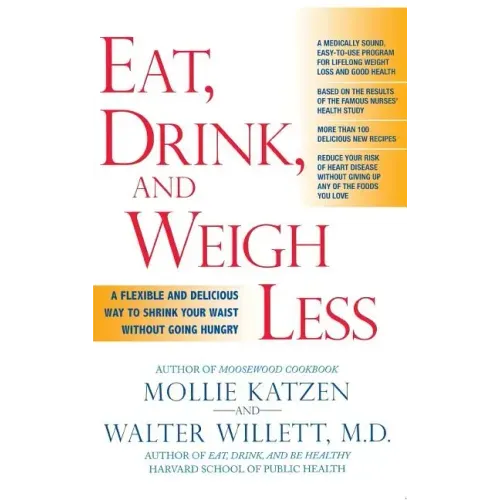 From the dream team of Dr. Walter C. Willett, bestselling author of Eat, Drink and Be Healthy, and Mollie Katzen, author of the four million-copy bestselling Moosewood Cookbook, comes a new approach to weight lossEat, Drink, and Weigh Less offers a medically sound, extremely effective program that shows people how they can lose weight by adding delicious food to their diet and making simple changes in what they eat throughout the day. It's flexible and adaptable--and it really works. It features a powerful way to chart your progress called the Body Score. The more you raise your Body Score, the more you will lower your weight A quiz at the beginning of the book helps readers determine their Body Score; the chapters that follow explain easy dietary and behavioral steps readers can take to improve their scores. While the concept is simple, the science behind it is not. It represents years of top research conducted by Dr. Walter C. Willett, the head of Harvard School of Public Health's Department of Nutrition, including the famous Nurses Health Study. This study scored each of its over 84,000 participants on food choices, exercise schedule, and body mass--resulting in a number that accurately determined the nurses risk of heart disease. Now, for the first time, Dr. Willett has teamed up with mega-bestselling cookbook author Mollie Katzen to adapt a similar, much easier scoring system to create a user-friendly diet plan with fail-safe results. If you can raise your score, you will lower your weight--all while eating delicious, easy-to-prepare foods.