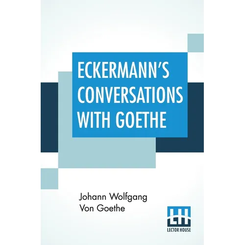 Eckermann's Conversations With Goethe: Extracts From The Author'S Preface Translated By John Oxenford This book is a result of an effort made by us towards making a contribution to the preservation and repair of original classic literature. In an attempt to preserve, improve and recreate the original content, we have worked towards: 1. Type-setting & Reformatting: The complete work has been re-designed via professional layout, formatting and type-setting tools to re-create the same edition with rich typography, graphics, high quality images, and table elements, giving our readers the feel of holding a 'fresh and newly' reprinted and/or revised edition, as opposed to other scanned & printed (Optical Character Recognition - OCR) reproductions. 2. Correction of imperfections: As the work was re-created from the scratch, therefore, it was vetted to rectify certain conventional norms with regard to typographical mistakes, hyphenations, punctuations, blurred images, missing content/pages, and/or other related subject matters, upon our consideration. Every attempt was made to rectify the imperfections related to omitted constructs in the original edition via other references. However, a few of such imperfections which could not be rectified due to intentional\unintentional omission of content in the original edition, were inherited and preserved from the original work to maintain the authenticity and construct, relevant to the work. We believe that this work holds historical, cultural and/or intellectual importance in the literary works community, therefore despite the oddities, we accounted the work for print as a part of our continuing effort towards preservation of literary work and our contribution towards the development of the society as a whole, driven by our beliefs. We are grateful to our readers for putting their faith in us and accepting our imperfections with regard to preservation of the historical content. HAPPY READING