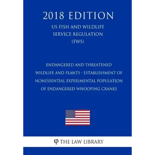 Endangered and Threatened Wildlife and Plants - Establishment of Nonessential Experimental Population of Endangered Whooping Cranes (US Fish and Wildlife Service Regulation) (FWS) (2018 Edition) The Law Library presents the complete text of the Endangered and Threatened Wildlife and Plants - Establishment of Nonessential Experimental Population of Endangered Whooping Cranes (US Fish and Wildlife Service Regulation) (FWS) (2018 Edition). Updated as of May 29, 2018 We, the U.S. Fish and Wildlife Service (Service), will reintroduce whooping cranes (Grus americana) into historic habitat in southwestern Louisiana with the intent to establish a nonmigratory flock. We are designating this reintroduced population as a nonessential experimental population (NEP) under section 10(j) of the Endangered Species Act of 1973 (ESA), as amended. The geographic boundary of the NEP includes the entire State of Louisiana. The objectives of the reintroduction are: to advance recovery of the endangered whooping crane; to implement a primary recovery action; to further assess the suitability of Louisiana as whooping crane habitat; and to evaluate the merit of releasing captive-reared whooping cranes, conditioned for wild release, as a technique for establishing a self-sustaining, nonmigratory population. The only natural wild population of whooping cranes remains vulnerable to extirpation through a natural catastrophe or contaminant spill, due primarily to its limited wintering distribution along the Texas gulf coast. If successful, this action will result in the establishment of an additional self-sustaining population, and contribute toward the recovery of the species. No conflicts are envisioned between the whooping crane's reintroduction and any existing or anticipated Federal, State, Tribal, local government, or private actions such as agriculture-aquaculture-livestock practices, oil/gas exploration and extraction, pesticide application, water management, construction, recreation, trapping, or hunting. This book contains: - The complete text of the Endangered and Threatened Wildlife and Plants - Establishment of Nonessential Experimental Population of Endangered Whooping Cranes (US Fish and Wildlife Service Regulation) (FWS) (2018 Edition) - A table of contents with the page number of each section